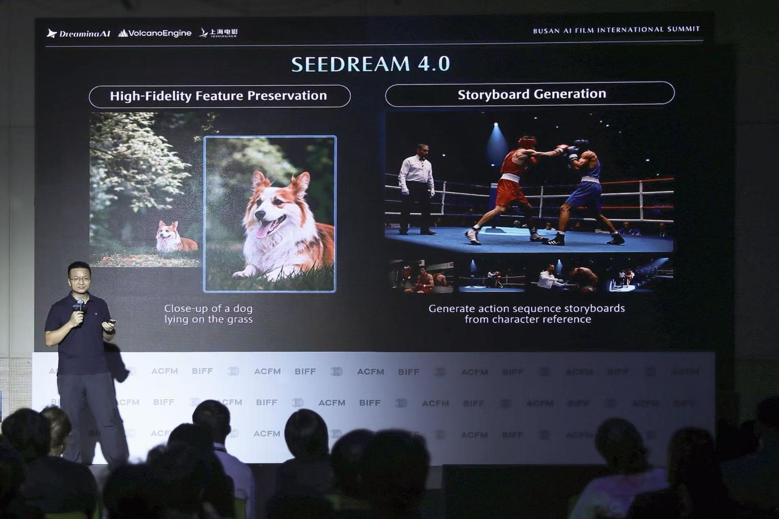 “未来影像”AI电影国际峰会的另一亮点,是关于AI技术在影视行业应用的分享。博纳影业集团影视制作副总经理曲吉小江介绍说,近年来,博纳在AI技术赋能影视创作与资产运营方面进行了诸多探索。她介绍,2023年底到2024年初,博纳正式成立了AIGC制作中心,并联合抖音、即梦AI推出了《三星堆:未来启示录》AI科幻短剧集,该系列第二季将打造为首部AI原生动画电影,深度应用火山引擎提供的Seendance、Seedream模型能力。此外,博纳影业还基于火山引擎多模态模型底座打造了“博卡短剧”平台,支持用户制作品质精良的短剧内容。